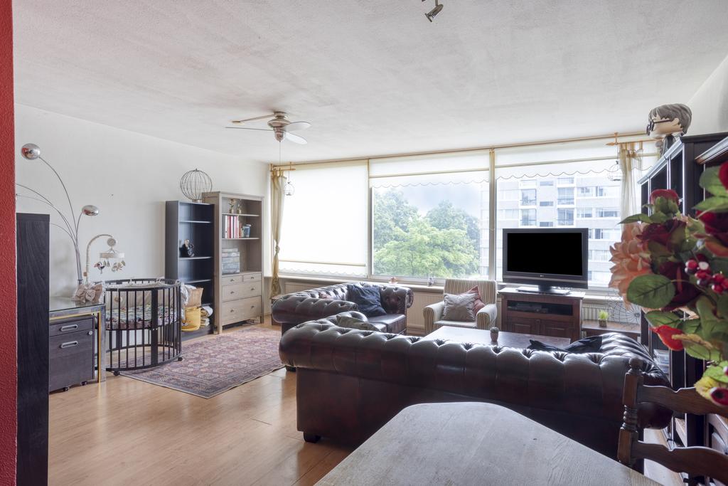 De woonkamer is heerlijk ruim en licht door de grote raampartijen over de gehele breedte. Vanuit de woonkamer heb je toegang tot een zijkamer die je kunt gebruiken als derde, grote slaapkamer maar wat ook prima dienst kan doen als werkruimte of ruime eetkamer. Deze ruimte biedt toegang tot het fijne balkon op het zuiden waardoor je fijn de middag- en avondzon hebt.