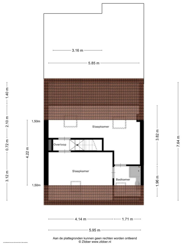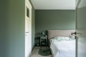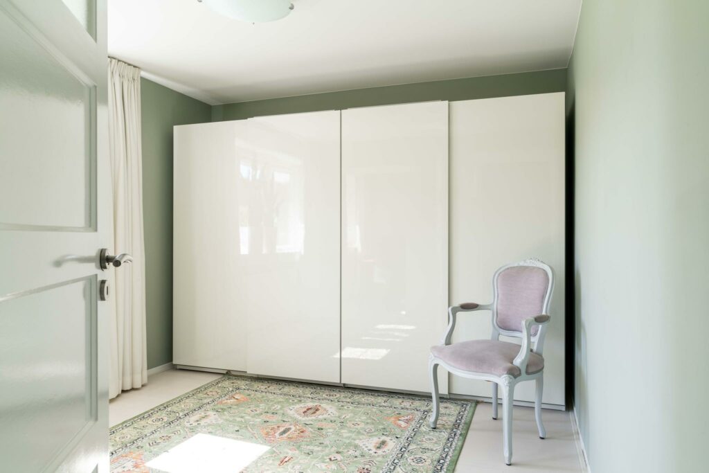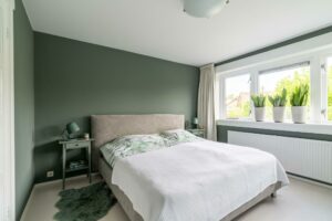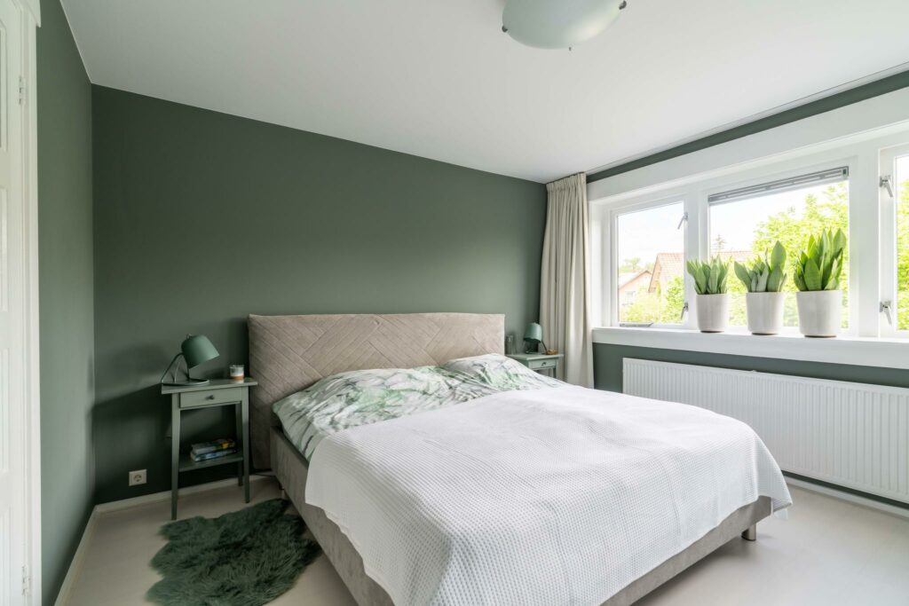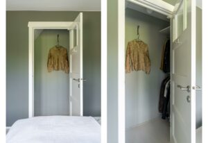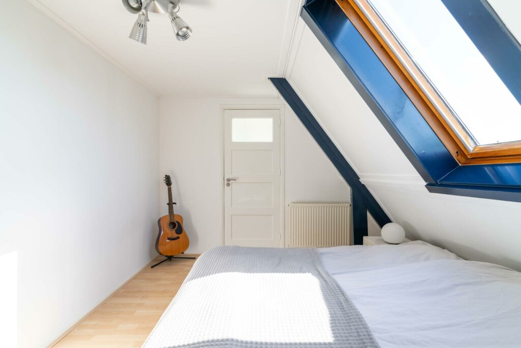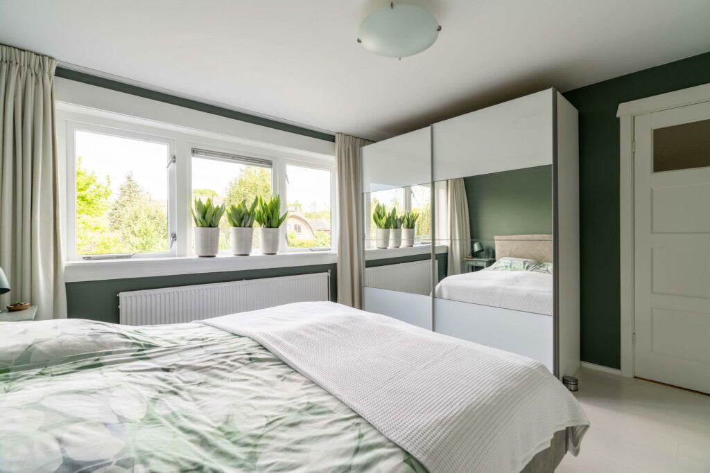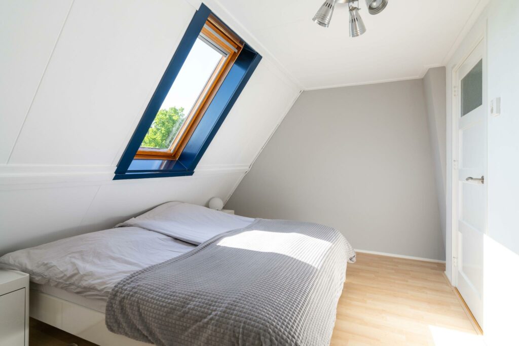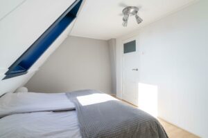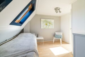 Aan de achterzijde bevindt zich de ruime en lichte slaapkamer van ca 14 m². Deze kamer beschikt over een klassieke vaste inloopkast, wat zorgt voor zowel comfort als charme.