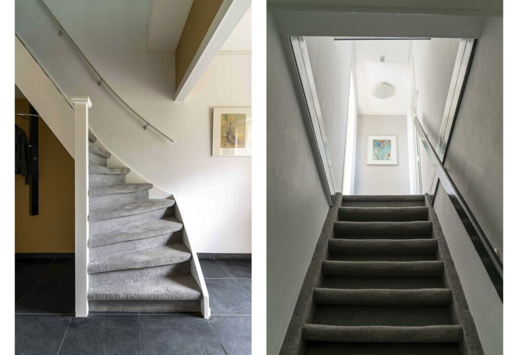 Op de overloop bevindt zich tenslotte nog een vlizotrap, die toegang biedt tot een volledig beloopbare vliering over de gehele breedte van het huis.