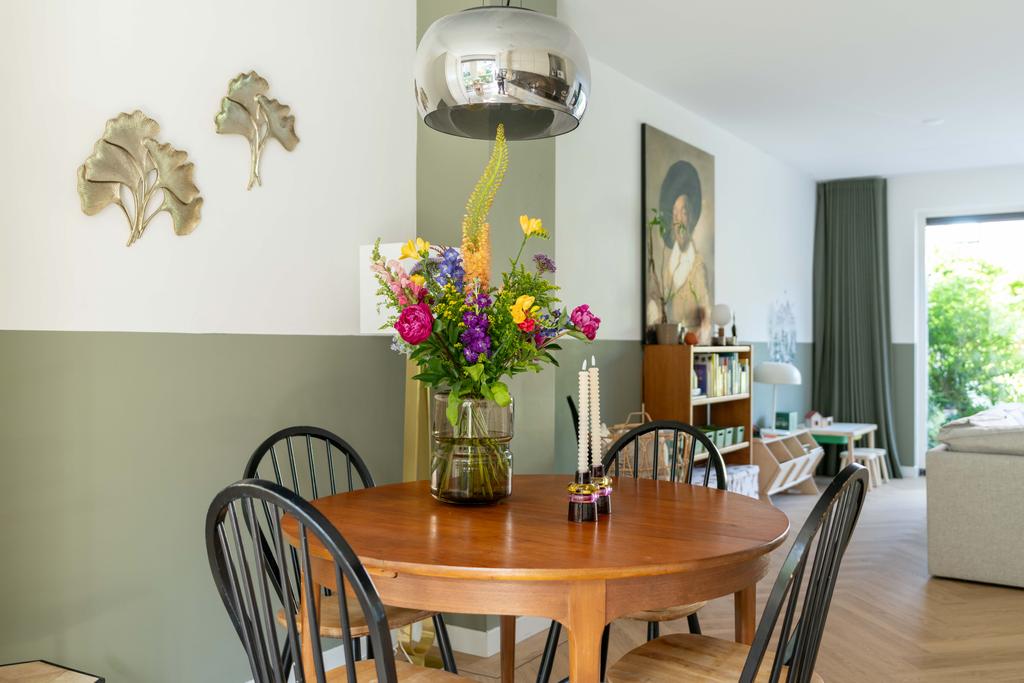 De tuingerichte woonkamer is verrassend breed en biedt daardoor alle ruimte voor een royale zithoek én bijvoorbeeld een gezellige speelplek voor de kinderen. Dankzij de openslaande deuren naar de zonnige achtertuin loopt binnen moeiteloos over in buiten.