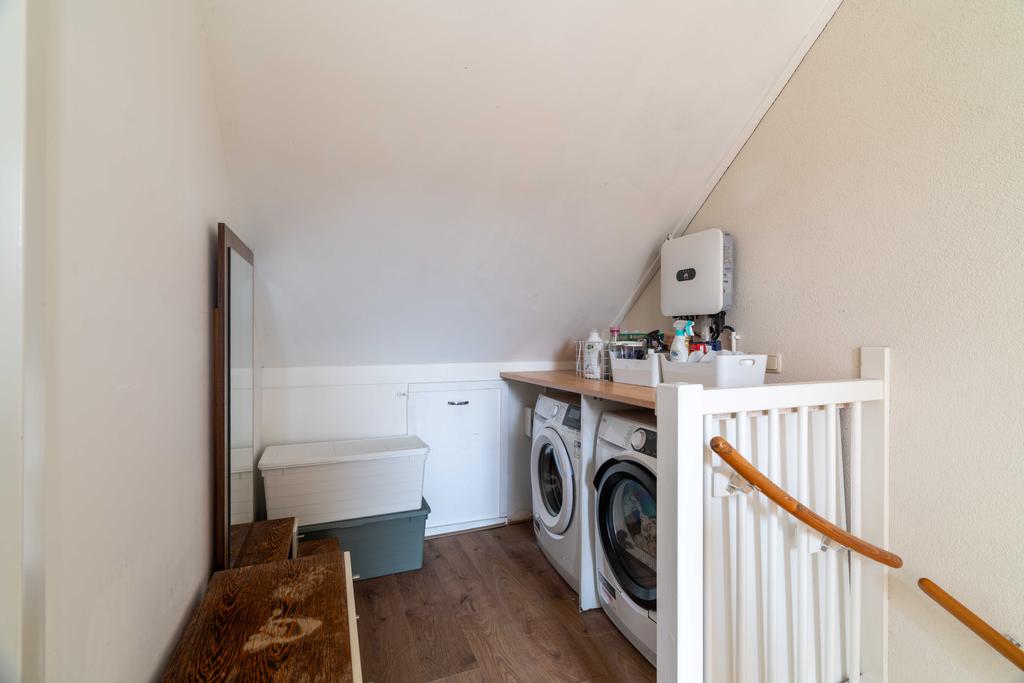 Ook de tweede verdieping is verrassend ruim en praktisch ingedeeld. Op de overloop bevindt zich de opstelplaats voor de wasmachine en droger. Daarnaast zijn er nog twee (slaap)kamers.