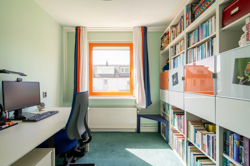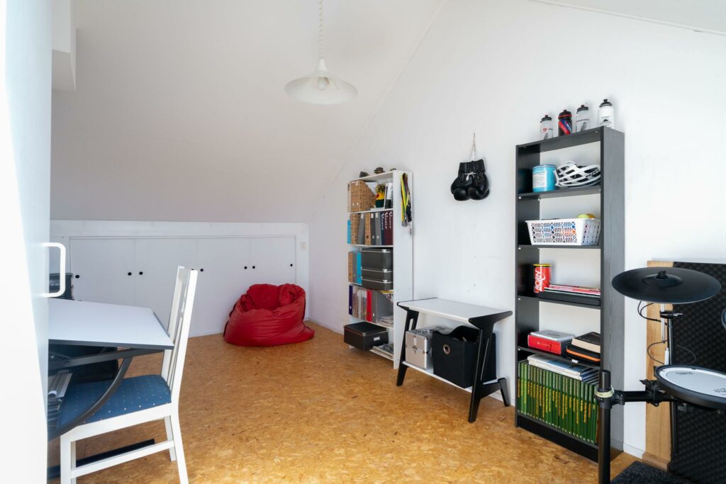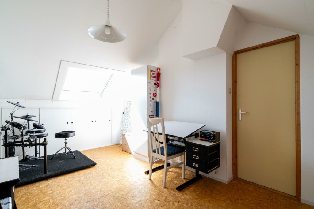 Via de overloop kom je in de vierde werk/slaapkamer. Een prachtige ruime kamer met groot veluxraam.