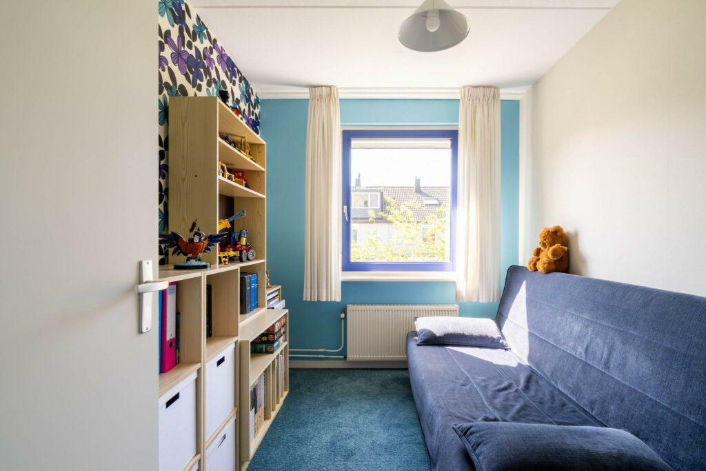 De slaapkamer aan de voorzijde is over de breedte van de woning en van fors formaat. Aan de achterzijde vind je twee ruime slaapkamers die prima dienst kunnen doen als kinderslaapkamer of werkkamer.