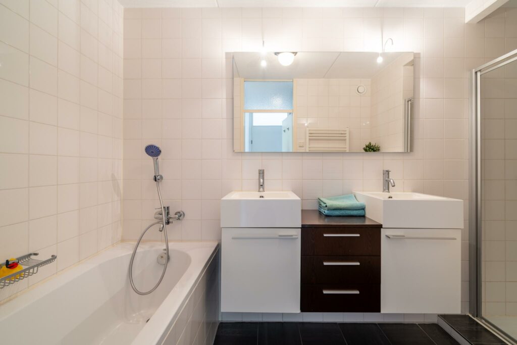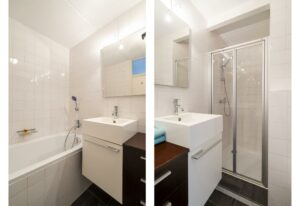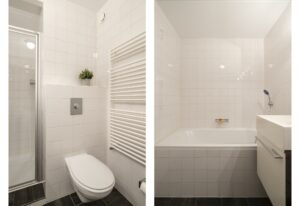 – Nette badkamer met ligbad en separate douche