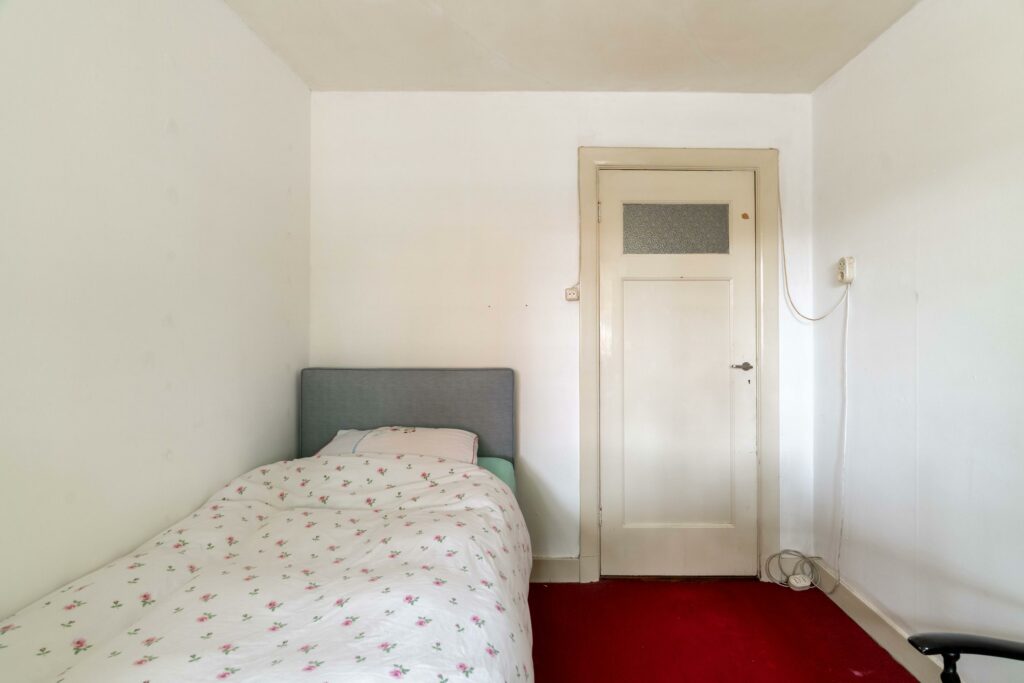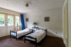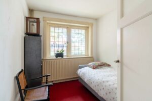 Aan de voorzijde bevinden zich twee slaapkamers. De eerste van ca. 6 m² is ideaal als babykamer of werkkamer. De tweede slaapkamer aan de voorzijde is ruim met ca. 18 m² oppervlak en beschikt over een grote vaste kastenwand. Beide kamers worden verfraaid door glas-in-loodramen.