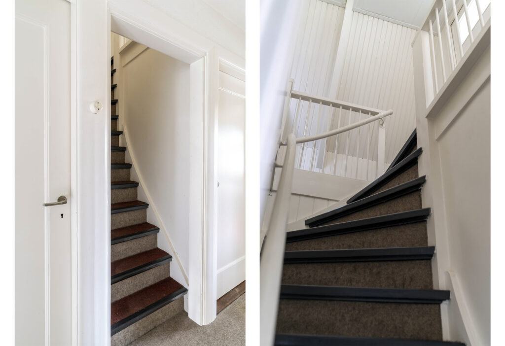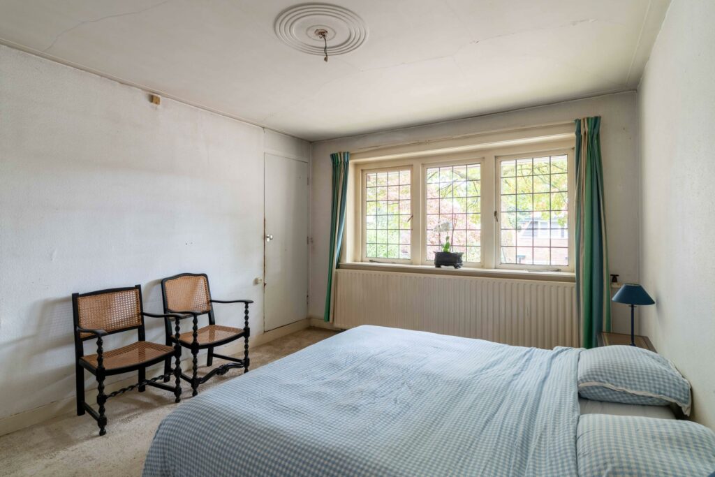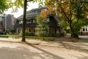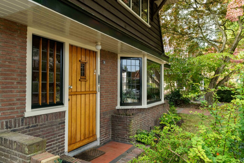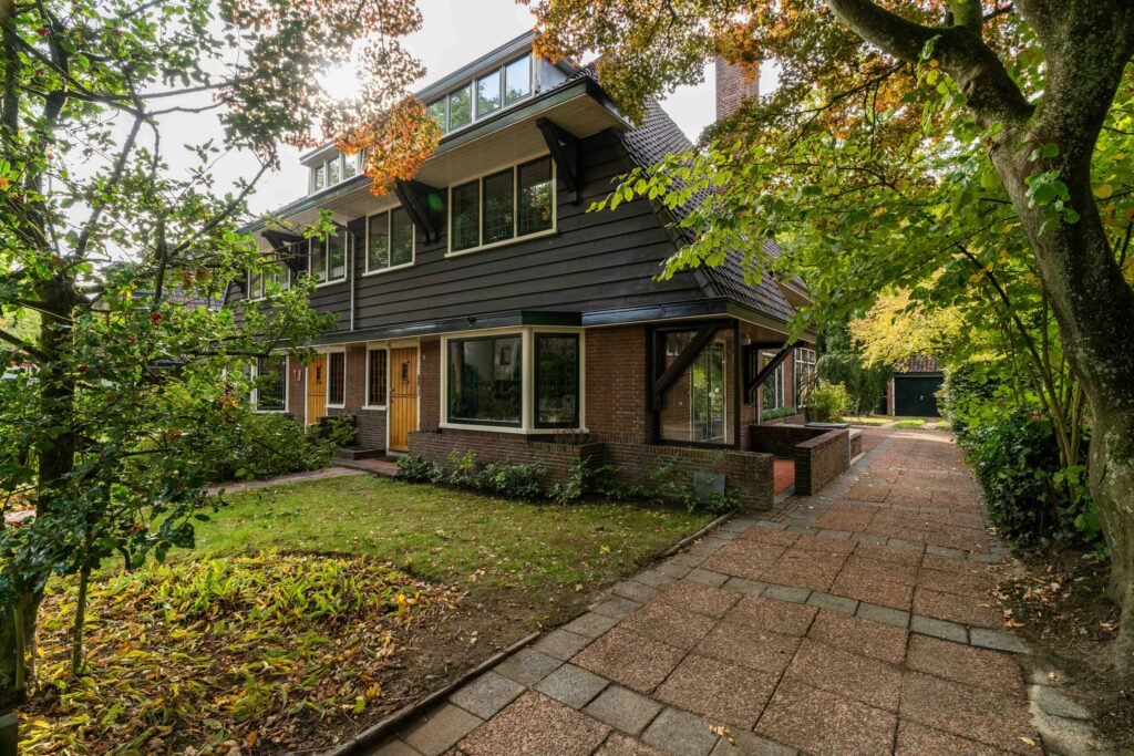 De woning, gebouwd in de jaren ’30, valt direct op door haar authentieke geveldetails en karakteristieke dak overstekken. Binnen zijn nog veel originele elementen aanwezig, zoals glas-in-loodramen, en-suite deuren, paneeldeuren, klassieke kozijnlijsten en origineel deurbeslag.