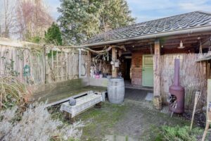 De ca. 30 meter diepe achtertuin op het zuiden is een absoluut pluspunt van de woning: zonnig, groen en veelzijdig. Direct achter de gevel ligt het eerste gezellige terras, perfect om te genieten van de zon. De tuin is voorzien van diverse fruitbomen en fraaie borders wat zorgt voor een weelderige en sfeervolle groene omgeving. Achterin staat een ruime berging met gezellige overkapping die beschikt over een praktische werkruimte, een ruime zolder en een achterom. Hierdoor biedt de tuin niet alleen een heerlijke buitenplek, maar ook volop mogelijkheden voor ontspanning, hobby of opslag.