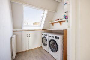 Via een vaste trap bereik je de tweede verdieping waar de overloop toegang biedt tot twee slaapkamers van ca. 14 en 6 m². Bovendien is hier een ruime wasruimte ideaal voor wasmachine en droger maar ook geschikt om te strijken en wasgoed te laten drogen. Verder vind je hier een derde toilet met wastafel. De wasruimte kan desgewenst ook worden omgebouwd tot tweede badkamer, waardoor de verdieping flexibel kan worden ingericht naar eigen wensen en behoeften.